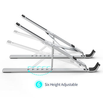 Ce support ergonomique offre 6 niveaux de hauteur réglables pour améliorer la posture et réduire la fatigue du cou, du dos et des yeux. Conçu en alliage d’aluminium robuste avec une structure triangulaire, il supporte jusqu’à 13,2 lb et assure une excellente stabilité. Les coussinets en silicone antidérapants protègent l’ordinateur contre les glissements et les rayures, tandis que les bords lisses garantissent une utilisation sûre et confortable, à la maison comme au bureau.